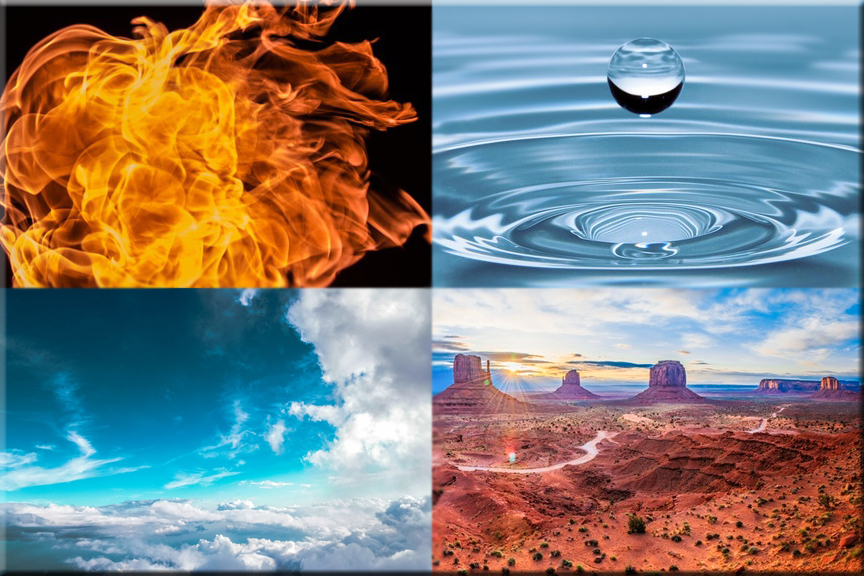 - I quattro elementi dell’astrologia (fuoco, terra, aria, acqua), sono gli elementi fondamentali di tutte le strutture fisiche, materiali e degli insiemi organici.